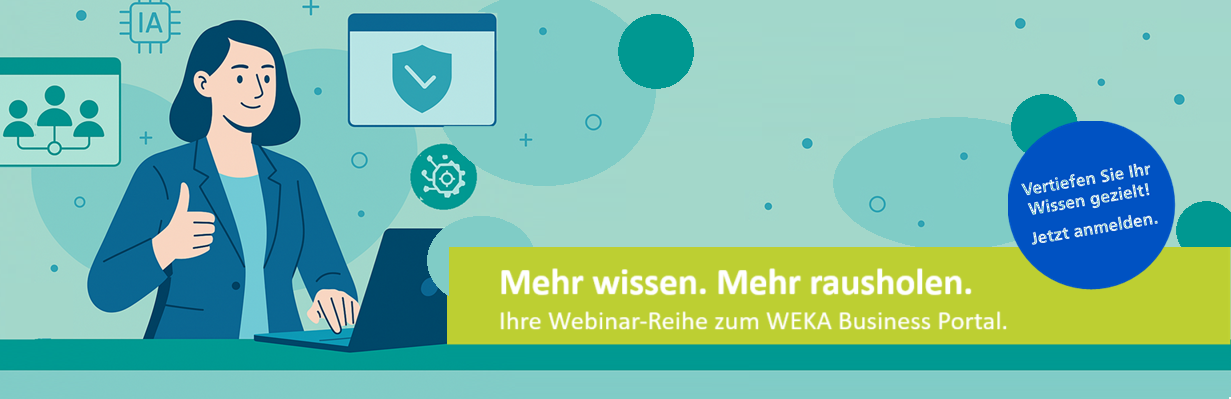 Ob Vorschriften, KI oder Anwendungstipps – wir zeigen Ihnen, wie Sie das WEKA Business Portal noch effizienter nutzen. Suchen Sie sich einfach die Themen aus, die für Sie relevant sind und machen Sie Ihr Business Portal zum echten Profi-Tool.
